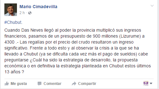 En su pagina de facebook el titular de Amia y ex senador nacional Mario Cimadevilla dejo una pregunta para reflexionar.