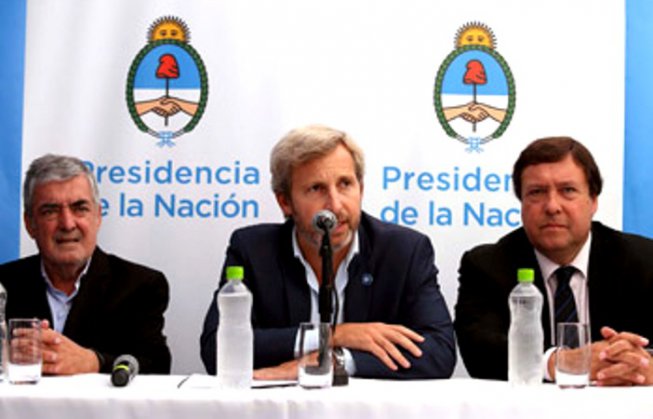 Frigerio fue quien brindó una conferencia de prensa sobre lo acordado, a todos los periodistas les llamó la atención la ausencia del presidente Mauricio Macri. Al ser consultado por esto, el ministro negó que tuviese relación con la represión ocurrida momentos antes y la detención de Rodolfo Aguilar. Explicó que «a algunas conferencias de prensa van los ministros. Yo soy el ministro del Interior, el ministro político, y el que en general tiene más vínculo con los gobernadores. Su ausencia no tiene nada que ver con la manifestación”.