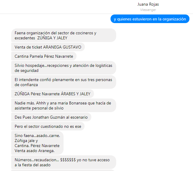 Juana Rojas asegura no haber tenido acceso a la recaudación ni a los números dejando entrever quienes serían los presuntos autores de la pérdida millonaria de la Fiesta Nacional del Asado, por estas horas el nerviosismo de los funcionarios municipales logró que el actual Secretario de Gobierno de Cholila Diego Saeb pierda el control y dominio sobre su persona y agreda a través de las redes sociales a vecinos de la localidad quienes siguen revelando datos y números de la Fiesta Nacional del Asado que se ha convertido en el CURRO DEL ASADO.