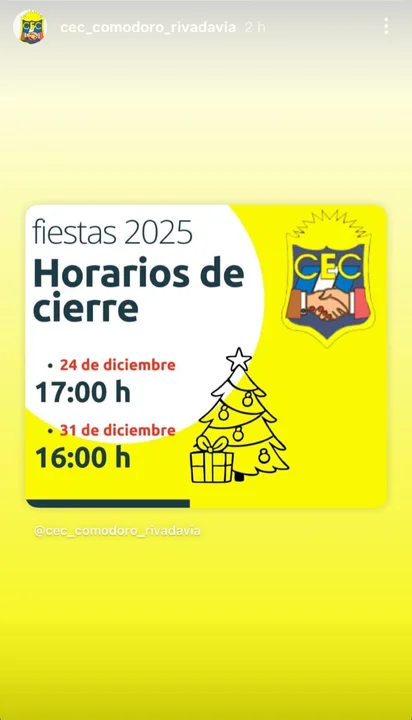 Con el objetivo de facilitar las compras de fin de año y permitir que empleados y responsables puedan celebrar en familia, se han establecido horarios de cierre reducidos para las vísperas de Navidad y Año Nuevo. La información, difundida a través de las redes sociales del organismo, busca anticipar a la población y evitar inconvenientes de último momento.