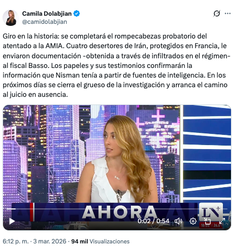 Este avance crucial para la justicia argentina fue revelado en una reciente nota del diario La Nación, publicada por la periodista Camila Dolabjian en su cuenta de X. Según la información disponible, los documentos fueron obtenidos por infiltrados dentro del propio régimen de Teherán, lo que aporta un valor probatorio sin precedentes al confirmar la cadena de mando y la logística utilizada para el ataque terrorista perpetrado en 1994.