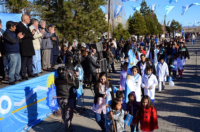 El Gobernador arribó cerca de las 10,30, siendo recibido por el presidente de la Comuna Rural y representantes de las diferentes instituciones que allí funcionan. Las autoridades se ubicaron luego en el Palco Oficial, dispuesto en la Plaza Principal de Cushamen, para luego de proceder al izamiento del Pabellón Nacional.