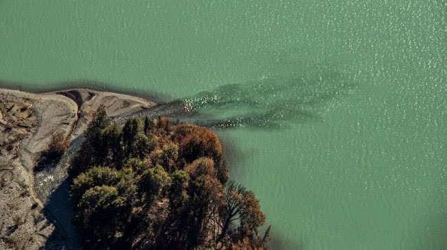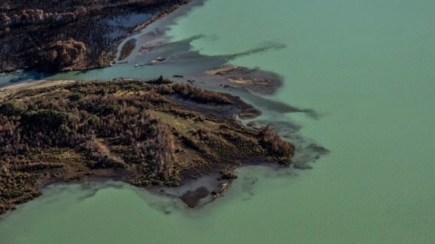 El piloto radicado en Cholila, Daniel Roy Wegrzyn sobrevoló ayer la zona afectada y desde su perfil en Facebook, compartió las fotos para demostrar el estado en que se encuentra el lago Cholila: «hoy es un lago turbio» y lamentó que «cuesta acostumbrarse a ver estas imágenes».