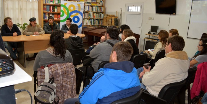 El secretario de Cultura del Chubut, Claudio Dalcó, y el subsecretario de Planeamiento y Ordenamiento Territorial, Pedro Juárez, encabezaron la presentación de los cuatro talleristas que iniciarán sus actividades en diferentes barrios de la zona sur y oeste de Madryn, impulsados por la Junta Promotora Local de Puerto Madryn.
