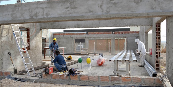 Actualmente, personal especializado en el armado de carpintería metálica concreta el montaje de la estructura superior sobre la cual se montará el techo, en un plan de obra que prevé su conclusión para el inicio del próximo ciclo lectivo.