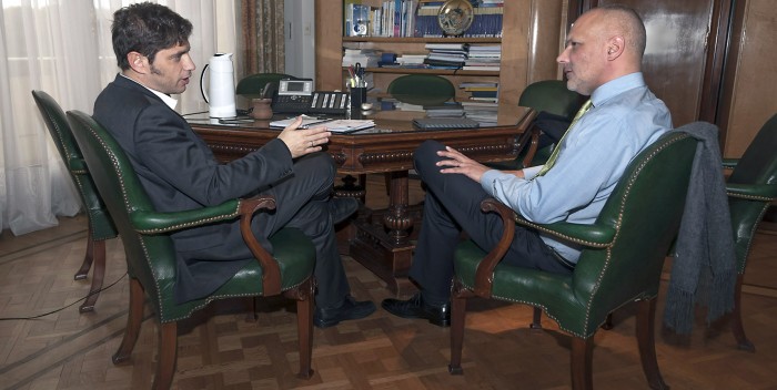 El gobernador Martín Buzzi se reunió hoy en Buenos Aires con el ministro de Economía de la Nación, Axel Kicillof. Durante el encuentro, que se extendió por cerca de una hora, ambos funcionarios dialogaron a solas sobre la evolución de las finanzas y el estado de ejecución de las diversas obras y políticas que se desarrollan en conjunto entre los Estados nacional y provincial.