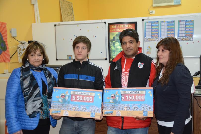 Lotería del Chubut entregó este viernes en la Agencia 6.013 de Comodoro Rivadavia, dos premios en efectivo del Telebingo Chubutense por un valor total de 200.000 pesos. Así, Mauro Benitez se adjudicó 150.000 pesos del Bingo de la quinta ronda del sorteo 733, mientras que Rodrigo Basiloff recibió otros 50.000 pesos del Bingo de la cuarta ronda del sorteo 734.