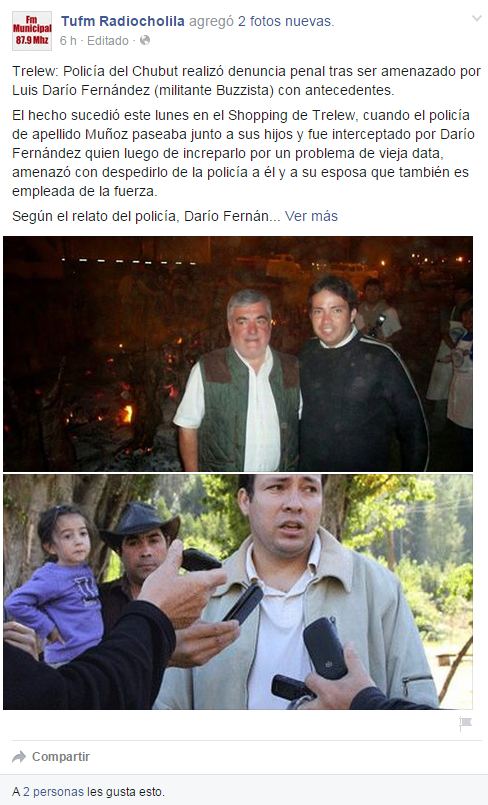 Pagina de Facebook de la radio municipal de Cholila que lidera politicamente Miguel Castro