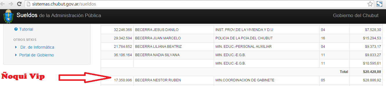 pesos por mes sin hacer nada junto a su socio Rubén Becerra el cual cobra unos 28.000 pesos por mes.