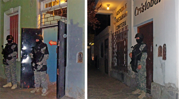 Los procedimientos fueron llevados a cabo a partir de las 21 en una whiskería de la calle Moreno casi avenida Lewis Jones, en otra de Lezana casi Italia. En una casa que está enfrente de este último local nocturno en donde se habría encontrado la acaudalada suma de dinero y en un domicilio de la calle Perú 150.
