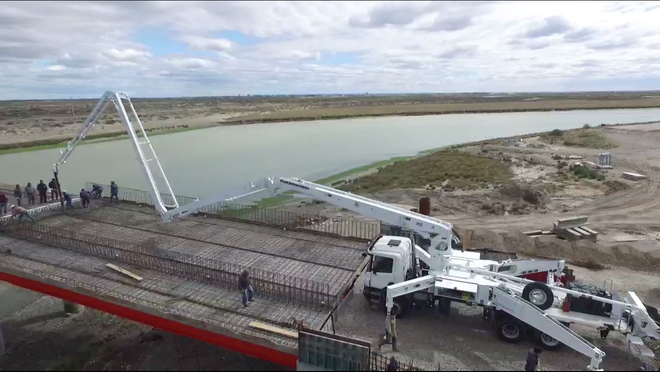 Además, el tablero principal del puente empezó a ser hormigonado en todo su ancho por una bomba especial comprada para tal fin. La maquina, que está montada sobre un camión, fue adquirida en Alemania y tiene una capacidad de 300 metros cúbicos de bombeo de hormigón por día.