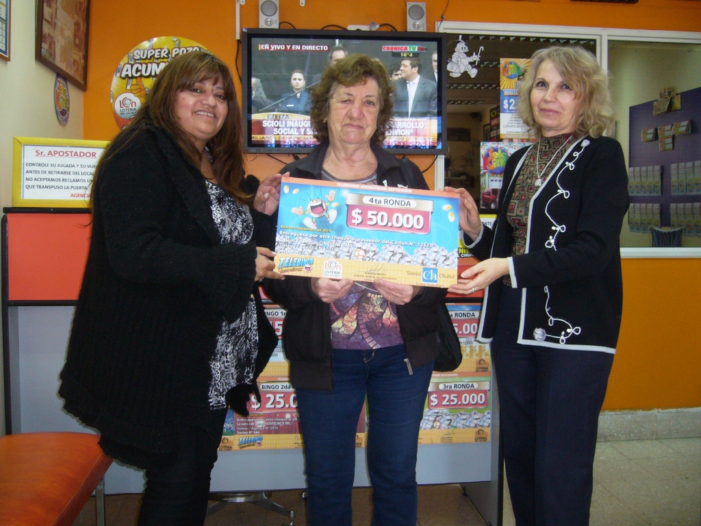 Por otra parte, la delegada zonal en Trelew del Instituto de Asistencia Social (IAS) Lotería del Chubut, Viviana Haro, entregó un premio por valor de $50.000 en efectivo a la señora Lidia Blasa de La Vega, de la ciudad de Rawson, ganadora del Bingo de la Cuarta Ronda del sorteo realizado el domingo 6 septiembre pasado. El cartón ganador fue adquirido en la Agencia 2.016 de Olga Cuenca.