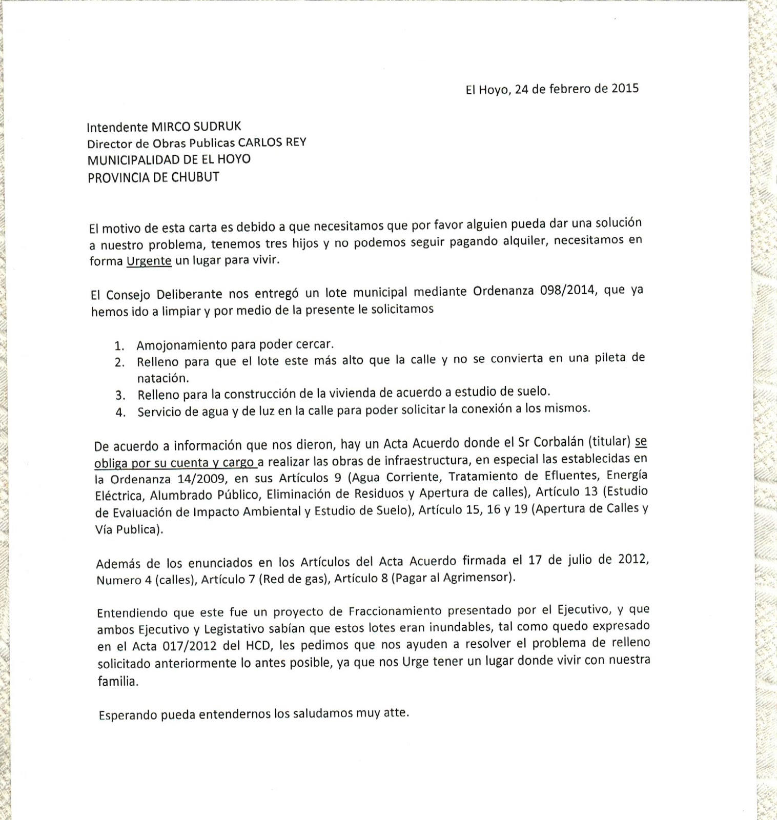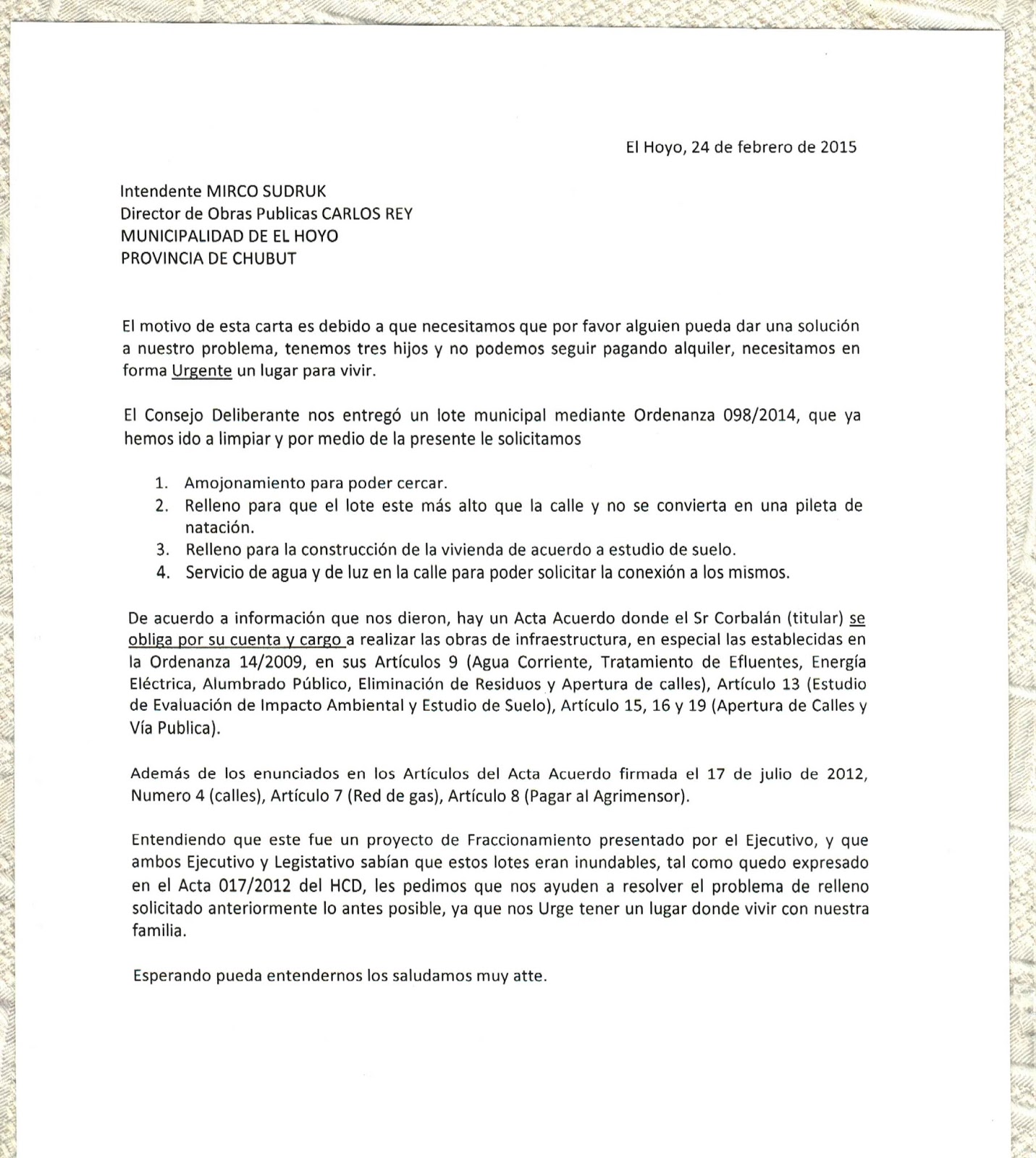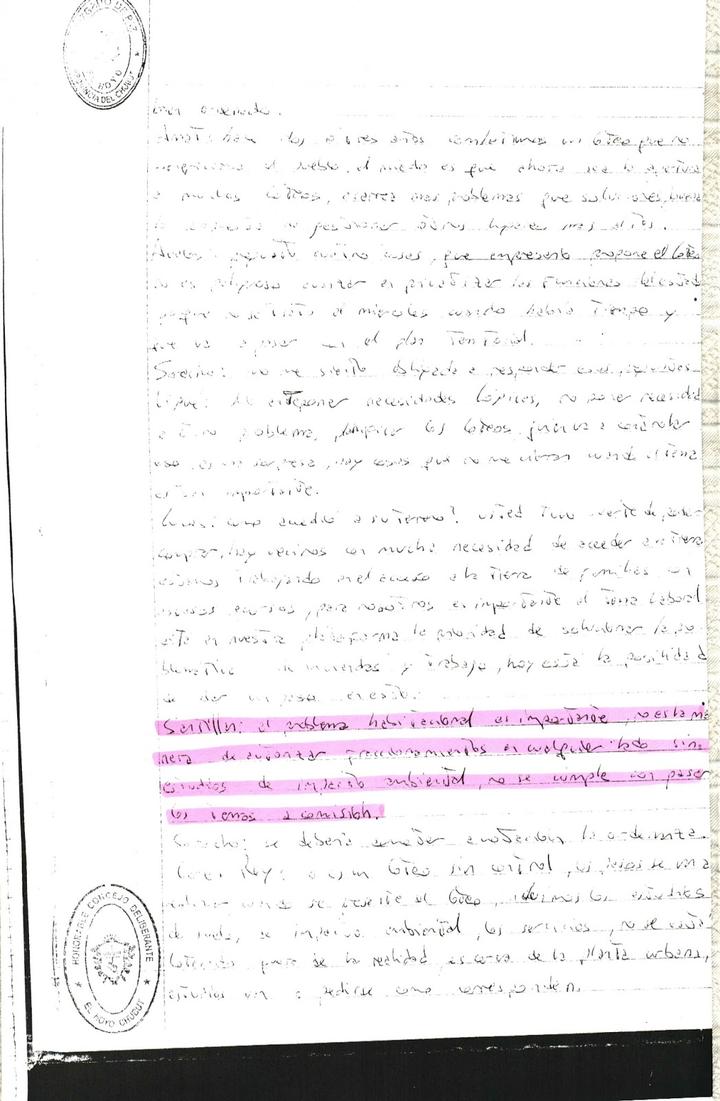 Es tanta la documentación que nos envian los pobladores, que publicaremos todo y que quedé a disposición de la Justicia y a criterio del lector.