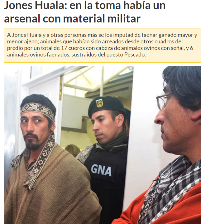 El delincuente no es Jones Huala a quien estigmatizó la derecha criminalizándolo junto a los Pueblos Originarios, este es el trabajo fino de las corporaciones, del capitalismo salvaje para crear un mito tan grande que pueda tapar que se robaron la Patagonia y Chubut por sus recursos naturales.