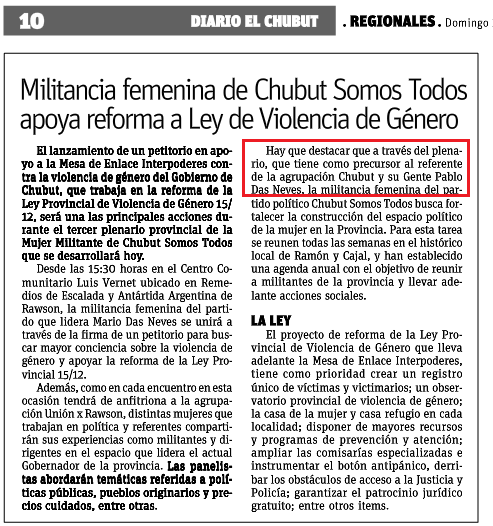 de la agrupación Chubut y su Gente y de Chubut Somos Todos”.