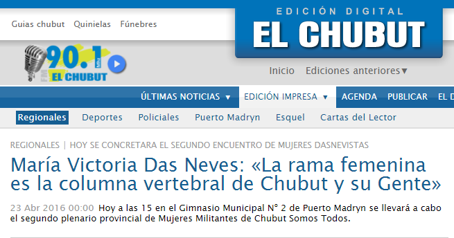 en una entrevista para Diario El Chubut el 23 de abril de 2016 que la: “rama femenina es la columna vertebral