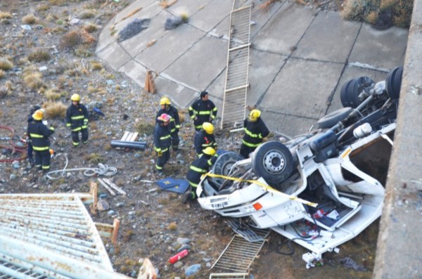 En el interior del rodado viajaban el chofer y una mujer, quienes perdieron la vida por el impacto. El camión al parecer pertenecía a una empresa de auxilios y quedó destruido. Por cómo quedaron las barandas del puente, hubo un derrape de por lo menos 20 metros hasta desplomarse al vacío.