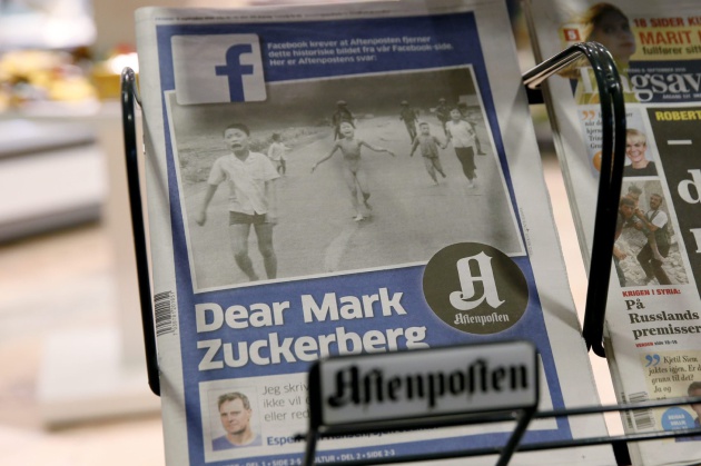 El periódico noruego respondía así a una polémica iniciada días antes cuando el escritor Tom Egeland compartió en su página de Facebook la famosa foto tomada en 1972 durante la guerra de Vietnam. La imagen – que fue distinguida con el premio Pulitzer – muestra a una niña corriendo desnuda tras el bombardeo con napalm realizado en su aldea por el ejército de EEUU. Facebook identificó el contenido como inadecuado y suspendió temporalmente el perfil de Egeland por publicarla. Una censura que indignó al medio noruego, que la compartió también en su perfil. Al hacerlo recibieron un email de Facebook pidiéndoles que retiraran o pixelaran la imagen.