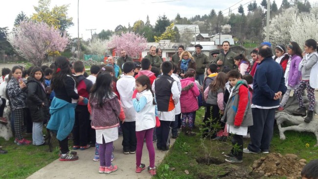 En la previa del Día de la Primavera, un centenar de alumnos de las escuelas 140 y 337 participaron ayer de la plantación de 15 especies nativas en el boulevard central del barrio Usina de la localidad de El Bolsón.