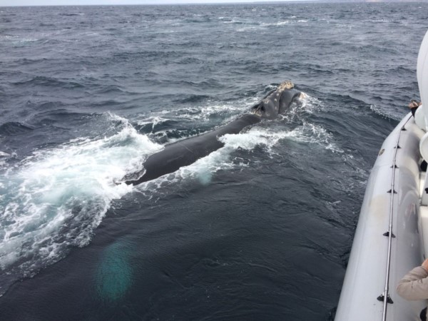 Gaffet contó también la experiencia, e indicó que «la ballena era una hembra que estaba en un lugar donde había tres grupos de cópula y unos 12 individuos y este animal en particular “vino como a refugiarse debajo de la embarcación”.
