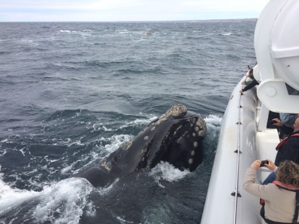 El capitán aseguró que se trata de un hecho único en sus años de experiencia como capitán, y lo mismo le transmitió Luis Pettite, fotógrafo que acompaña excursiones en Península Valdés. «El grupo se nos vino muy de golpe encima, y la hembra se apoyoó sobre el pontón para querer escapar del acoso de los machos, pero se apoyó de una manera muy suave» dijo Martorell.