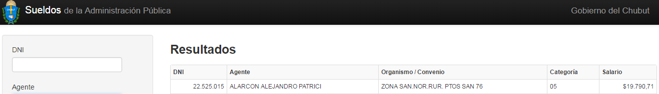 Alejandro Alarcón en el Ministerio de Salud categoria 5 como chofer $ 19.790.