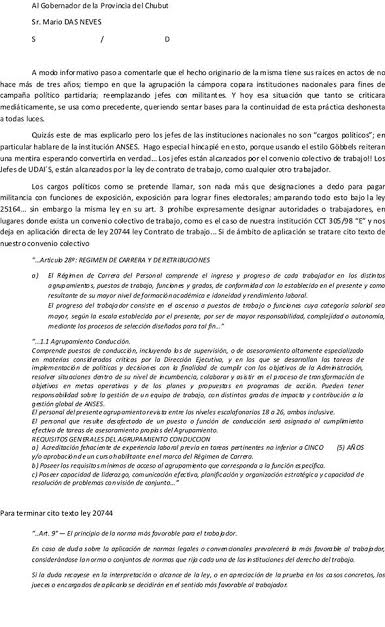 Reclamo al Gobernador Mario Das Neves