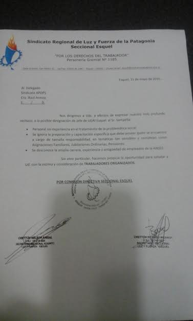 En Anses Esquel se desató la polémica por la supuesta designación de puntero político del PRO, Osvaldo Zampella.