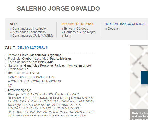 Salerno también tiene un empresa en el rubro de la construcción ¿Habrá realizado obras para el IPV? ¿Realizará obras para infraestructura?