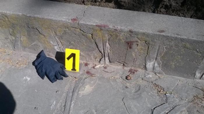 Manchas hemáticas sobre una de las veredas del boulevard de Avenida Alvear.