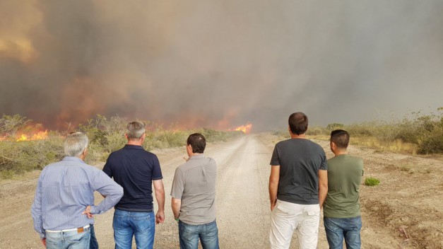 Un incendio de campos que comenzó poco ante del mediodía del jueves y no pudo ser controlado por los brigadistas y avanza empujado por el viento hacia el paraje conocido como «Puerto Lobos», en el extremo noroeste del Chubut, cerca del límite con Río Negro y a 15 km. del golfo San Matías.