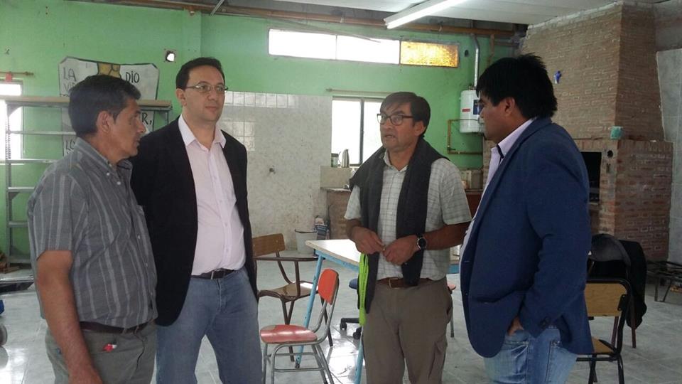 Junto al cura párroco de la institución religiosa, Pedro Narambuena, además director de la Obra Salesiana, Maderna recorrió las instalaciones del SUM de la Iglesia en la que se aportó mano de obra municipal para poder llevar adelante trabajos de refacciones en el piso y las paredes del lugar.