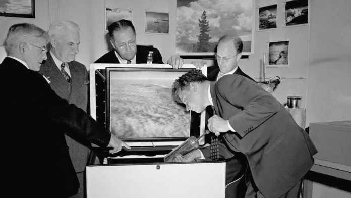 Ocurrió el 13 de noviembre de 1946. Una nube se extendía por el monte Greylock (Massachusetts) cuando de repente una avioneta pasa a través de ella. En pocos segundos la nube cambia de aspecto y comienza a soltar nieve. Un hombre ve la escena emocionado desde abajo. Había descubierto que podía alterar el tiempo.
