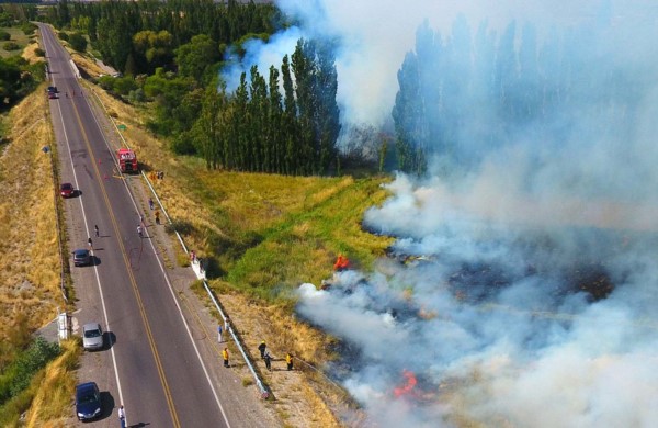 Por ello, esa vía nacional, cuyo área involucrada, es la parte que se dirige hacia el intercambiador rutero que combina con las direcciones a Comodoro Rivadavia, Rawson y Trelew, se vio momentáneamente clausurada a raíz de la labor de los servidores públicos trelewenses y capitalinos y que recibieron la ayuda de la Guardia urbana y Defensa Civil local, que no sólo colaboraron con el tránsito vehicular que se complicó en el sitio, sino también con el aporte de camiones hidrantes que trajeron el vital elemento del agua para sofocar el foco ígneo, que, de acuerdo al viento existente y la maleza en el lugar, ardía, por momentos, de modo preocupante, no sólo por la quema de las cortinas de los árboles existentes, como álamos y tamariscos, sino también por el inevitable temor de que el foco ígneo se extendiera hacia la zona urbanizada de la zona sur de Trelew.