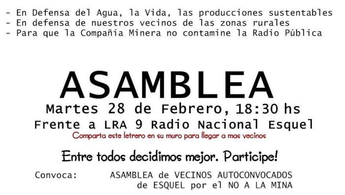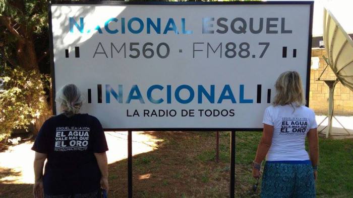 El viernes último vecinos se habían acercado hasta la emisora en rechazo a los programas pro mineros en Radio Nacional Esquel y dieron lectura ante los medios de comunicación a un documento donde rechazan que el gerente de comunicaciones de Minas Argentinas, subsidiaria de Yamana Gold, y un médico vinculado a la misma estén a cargo de dos programas radiales que comenzaría a emitir la “Radio de Todos”.