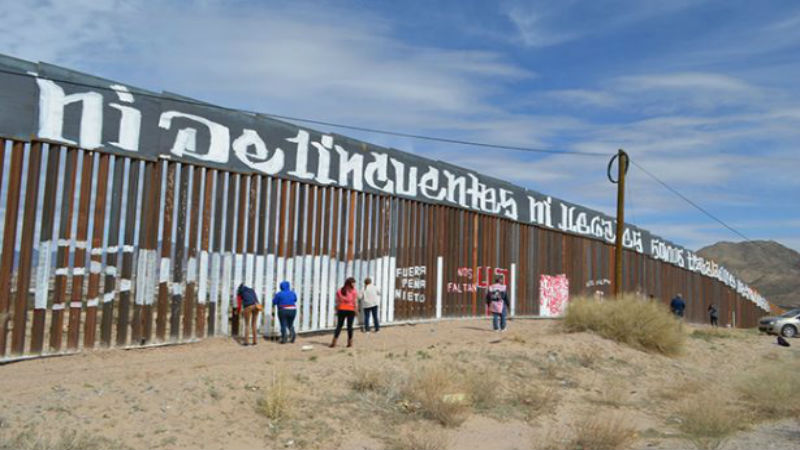 Mientras tanto con motivo de la demanda de aparición de los 43 normalistas de Ayotzinapa y las protestas contra las políticas racistas de Donald Trump, el pasado 26 de febrero manifestantes y artistas urbanos pintaron el muro fronterizo del lado mexicano entre Ciudad Juárez, Chihuahua, y Nuevo México la leyenda, “Ni delincuentes, ni ilegales, somos trabajadores internacionales. Fuck Donald Trump y su pinche muro”.