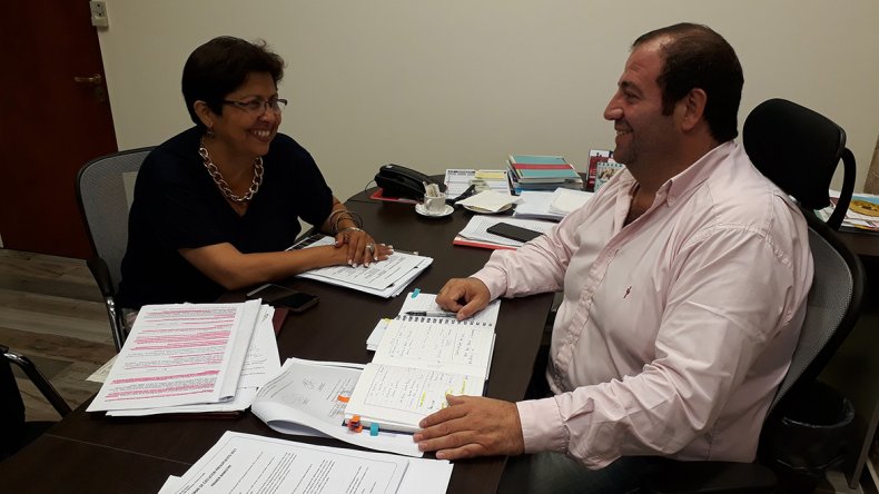 El titular de la Comisión número 2 del Concejo Deliberante, el edil de Cambiemos Pablo Martínez, se reunió ayer con la diputada provincial Viviana Navarro del Frente para la Victoria, con quien analizó los dos proyectos en materia social que fueron aprobados por la Legislatura, pero luego vetados por el Ejecutivo provincial. Se trata de la ley para declarar la Emergencia pública en materia de Violencia de género y la legislación destinada a la creación de un fondo para financiar los Servicios de Protección de Derechos de toda la provincia.