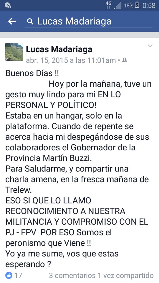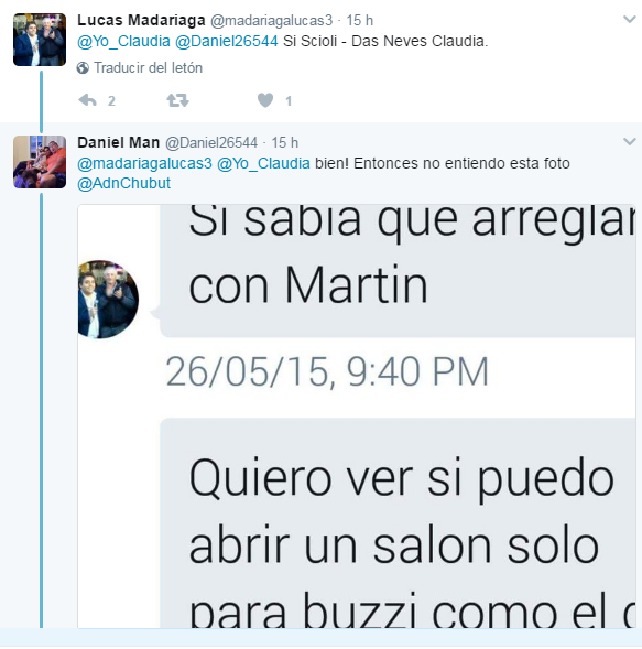 Pero en definitiva lo que la sociedad demostró a través de un mensaje de texto de Madariaga que fue publicado por la Daniel Man un peronista twittero es que en 2015 trabajo para Buzzi hasta quiso conformar una agrupación para el ex Gobernador trabajando en contra de Das Neves.