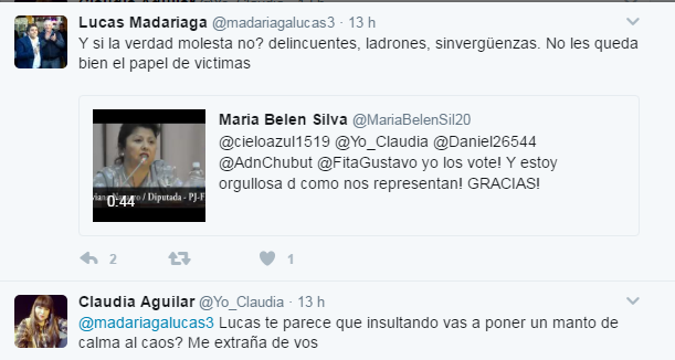 Insultos, calumnias, injurias y todo tipo de agravios fueron desplegadas en las redes sociales contra diputados provinciales del PJ-FPV por Lucas Madariaga, ex militante de la agrupación El Peronismo que Viene que conduce Nicanor Arbeletche, ex Agrupación Nuevos Cuadros del PICH y obsesionado seguidor del ex Gobernador Martín Buzzi.