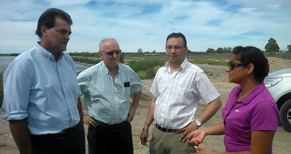 El intendente de Trelew, Adrián Maderna, junto al ministro de Ambiente y Control del Desarrollo Sustentable, Ignacio Agulleiro, recorrieron parte de la Laguna Negra en compañía del técnico del CONICET Mauricio Faleschini, con el objetivo de evaluar la posibilidad de utilizar estos efluentes como agua de reuso.