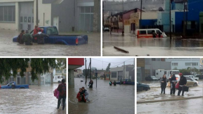 Una mujer que estaba a punto de parir ayer a las 17 fue rescatada de la parte alta del barrio Jorge Newbery y trasladada al Hospital Regional. En medio de la tormenta con un embarazo a término, no podía dirigirse hacia el nosocomio ya que no había transporte público de pasajeros, ni servicio de remises y taxis, por lo que efectivos de la Seccional Segunda la rescataron de la vivienda de Florida al 1.000.