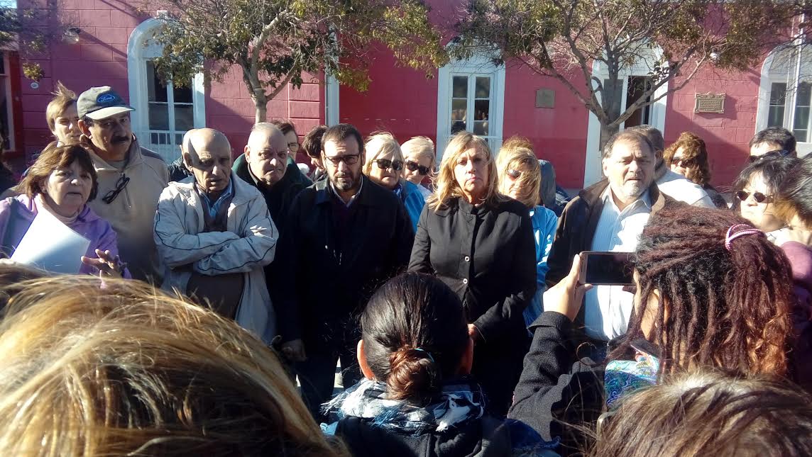 La intendenta Rossana Artero dialogó este viernes cerca del mediodía con los vecinos de Rawson que se autoconvocaron por la falta de agua, frente a la Municipalidad.