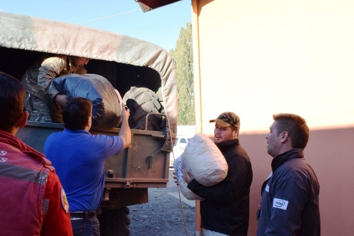 Desde horas tempranas del día viernes el cuartel de Bomberos Voluntarios fue receptor de donaciones para la gente de Cañadón Grande en Gualjaina bajo la coordinación de Cáritas de la Prelatura Esquel que en horas de la tarde completó un camión de gendarmería con víveres, colchones y frazadas.