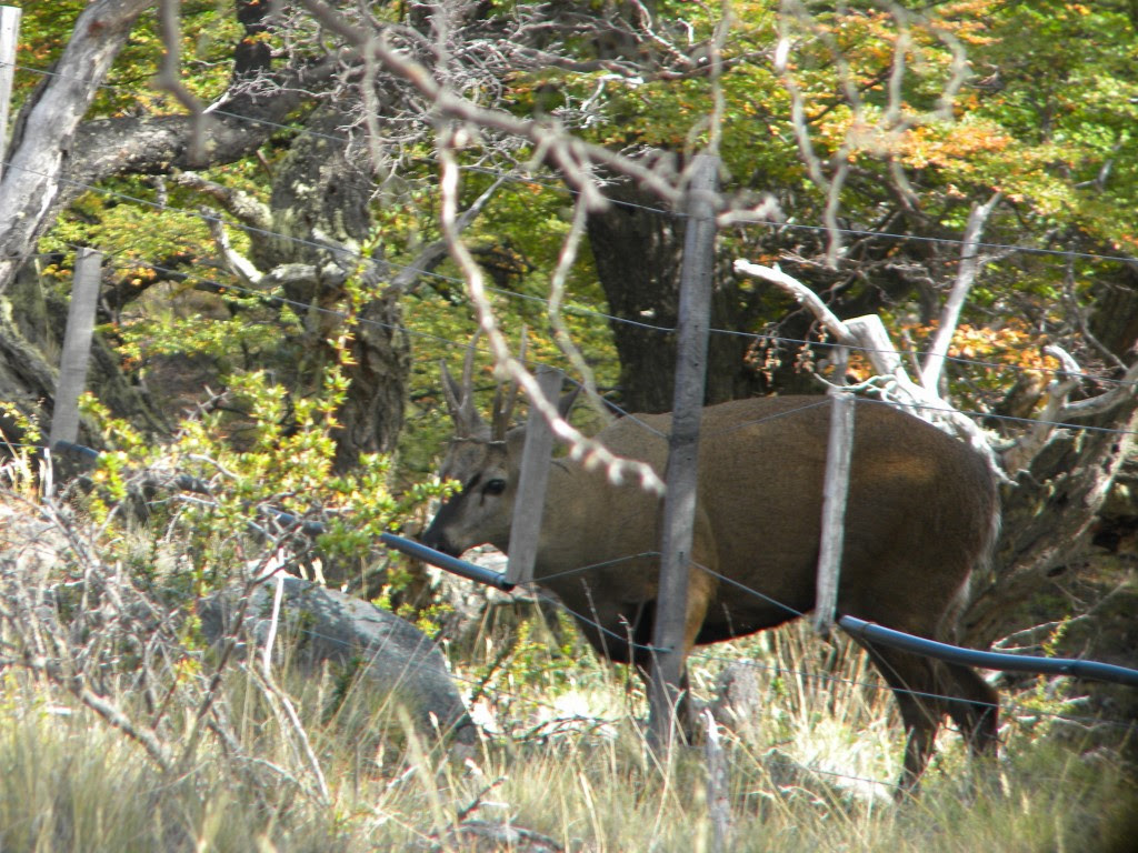 | Ejemplar macho de huemul (Hippocamelus bisulcus) utilizando un paso para el tránsito de la especie a través de los alambrados que limitan la Zona Norte del Parque Nacional Los Glaciares. |