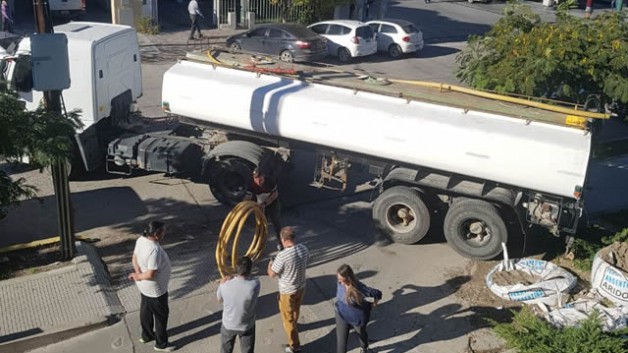Agua para los diputados. Ayer un camión cisterna cargó los tanques de la Legislatura.