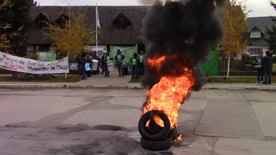 Si bien los gremios Soeme y ATE reclaman en puntos distintos, uno en la puerta de acceso al municipio Cholilense y el otro en la puerta trasera, ambos quemando cubiertas, las realidades son similares, trabajadores becados que no cobran más de $2000 mensuales, «en la reunión del 27 de abril con el gremio ATE Boudargham, nos dijo que les daba la posibilidad a los trabajadores que busquen changas por afuera que él igual les paga la beca, esto es obligar a nuestros compañeros a ser ñoquis y estafar al estado «graficó una de las referentes del gremio.