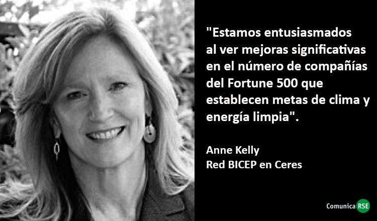«Estamos entusiasmados al ver mejoras significativas en el número de compañías del Fortune 500 que establecen metas de clima y energía limpia y lo ambicioso de esos objetivos, en particular los compromisos de fijar objetivos basados en la ciencia y en energías renovables», dijo Anne Kelly, Directora de política y la red BICEP en Ceres. «Pero para cumplir con nuestros objetivos nacionales y mundiales de emisiones, más empresas tendrán que unirse a los líderes destacados en este informe, tanto en el establecimiento de metas como en la defensa de políticas federales y estatales continuas en apoyo del clima y el progreso de la energía limpia. «