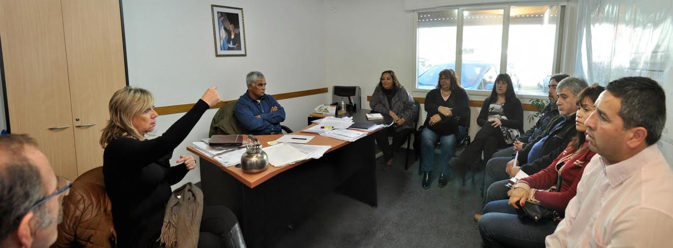 La intendenta Rossana Artero participó de una reunión con referentes de ATE, UPCN y EMA que nuclean a los trabajadores municipales, en el marco de la Junta de Admisión, Calificación, Disciplina y Reclamos de la Municipalidad de Rawson que está compuesta por el Poder Ejecutivo, trabajadores y gremios. En ese ámbito se trabaja para definir, de acuerdo con parámetros consensuados, el pase a planta transitoria de Programas de Empleo Local (PEL).