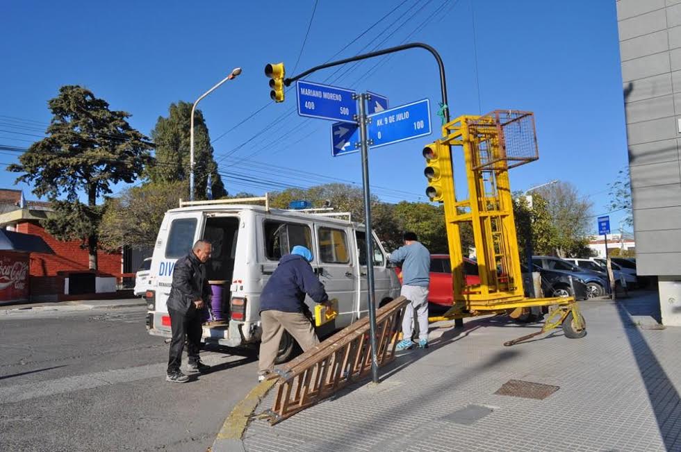La cartelería incluye prohibición de estacionamiento en algunos sectores de la capital provincial y colocación de flechas para agilizar la circulación en una de las arterias más transitadas, como Mariano Moreno y 9 de Julio.