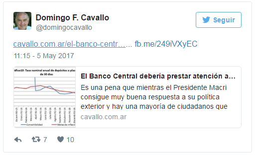 En su blog, el responsable del corralito aseguró que «es una pena» que el gobierno de Mauricio Macri «no esté logrando convencer a la gente que el rumbo económico que ha tomado su gobierno va a llevar a buen puerto».